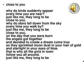 你知道吗?最近在娱乐圈里,有一首英语歌曲可是火得一塌糊涂,成为了大家茶余饭后的谈资。这首歌不仅旋律动听,歌词也充满了趣味,让不少“吃瓜群众”都忍不住跟着哼唱起来。今天,就让我带你一起来揭秘这首神奇的英语歌曲,看看它究竟有何魅力!